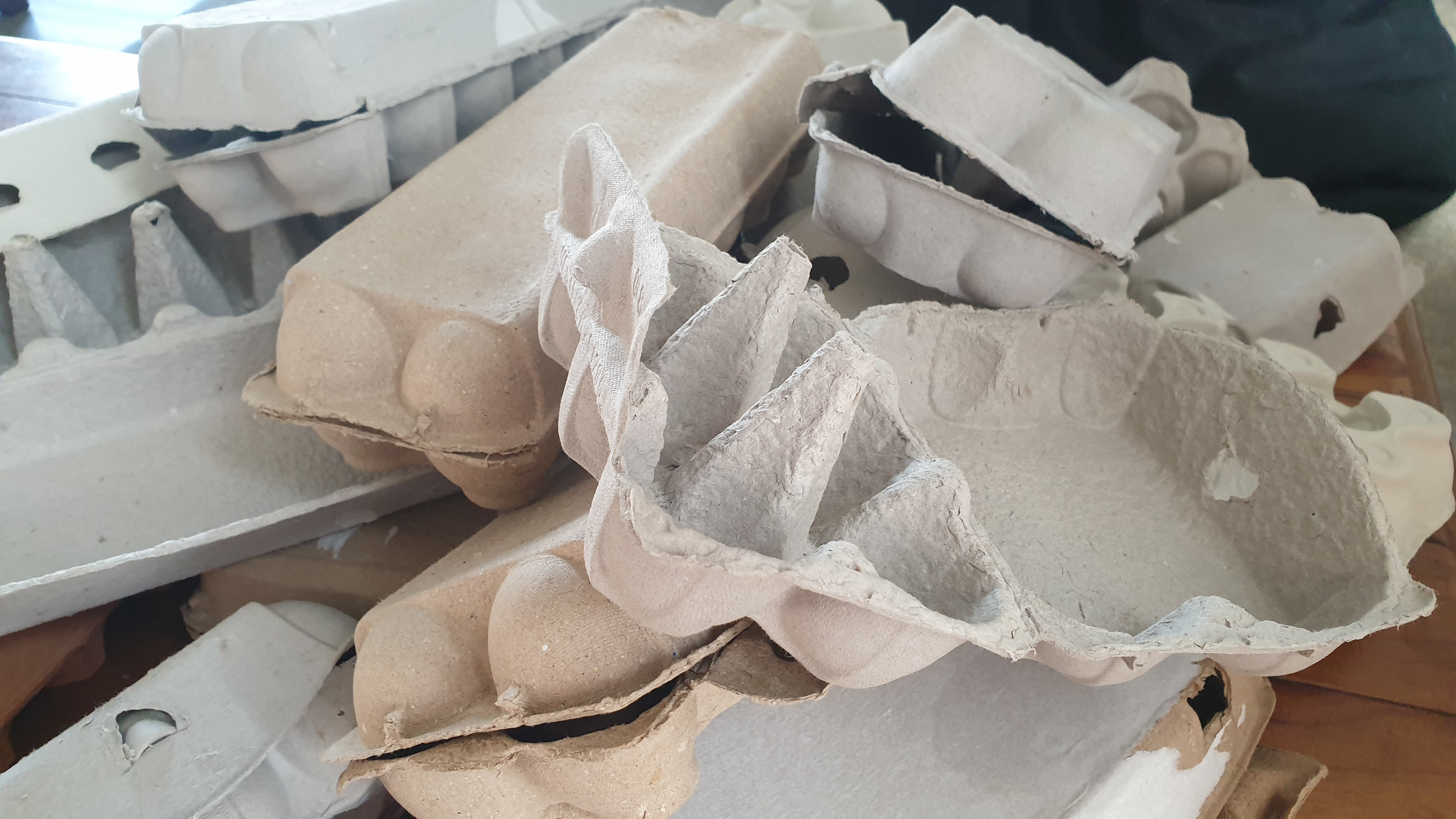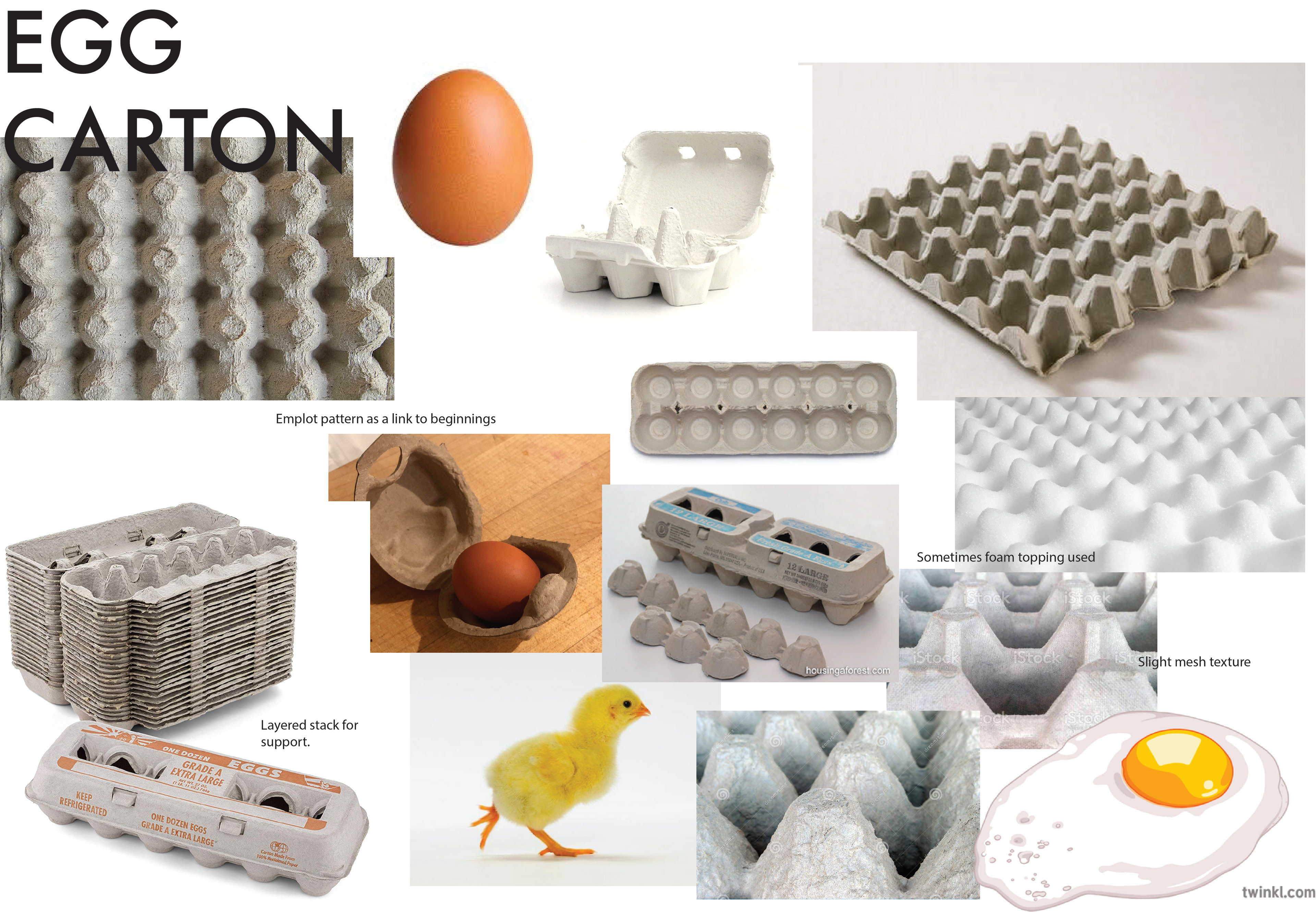 Slide design exploring the repurposing of egg carton paper pulp.
